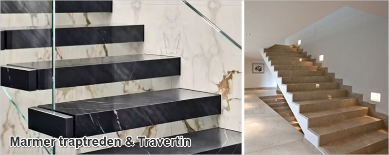 Travertin en marmer zijn gemakkelijker op maat aan te passen en dus beter geschikt voor binnentrappen